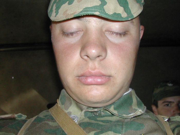 Всю ночь и утро льет дождь. Михайлов пытался нас разбудить, но был послан нахуй. Завтракаем и выдвигаемся на стрельбище. На стрельбище нам объясняют элементарные правила стрельбы. Стреляли из Калашникова. На 2 мишени выдали 9 обычных и 3 трассирующих патрона. Тогда как на каждого должны были выделить по рожку. Мишени нам показали перед самой стрельбой, но увидеть их смогли немногие. Остальные стрелки жгли патроны "куда-то туда". Отстрелялись очень плохо: только 3 человека из взвода выбило обе мишени. Кириллов заявил, что тренировались плохо. Какой нахуй тренировались!? Последний раз мы видели калаш 2 года назад на военке. Кто-то даже не знал, где находится предохранитель! Тогда как на войне автомат – твое главное оружие. Ты с ним спишь, ешь, ходишь на построение, и из него тебе придется стрелять в первую очередь.