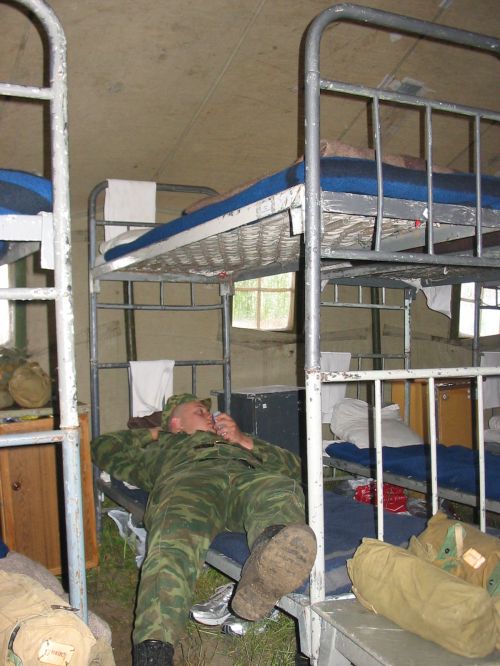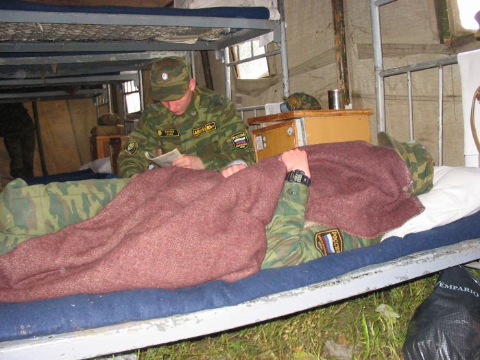 На все имущество пришиваем бирки. Создаем видимость работы, никуда не торопимся. 4 бирки пришивали 4 часа. Погода такая же, как и вчера: целый день моросит дождь, жутко холодно. Берцы постоянно покрыты слоем грязи. У Сайфи матрац промок насквозь. Из-за большой влажности фотоаппарат Фаса перестал работать. Пред отбоем нам выдали вторые одеяла, но все равно очень холодно - ночью просыпаемся по несколько раз.