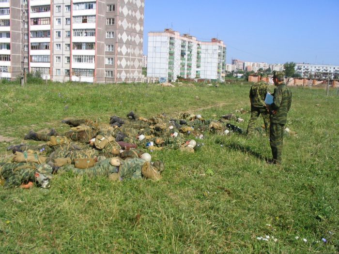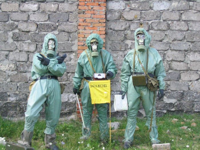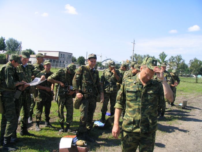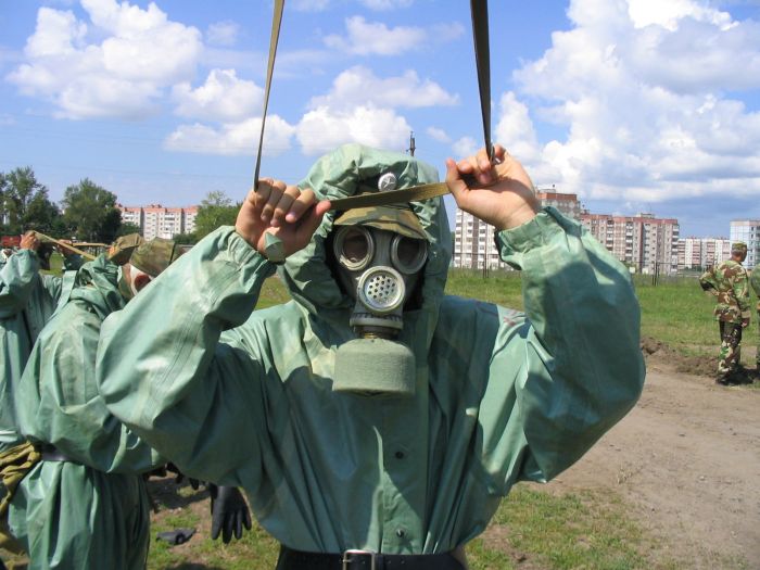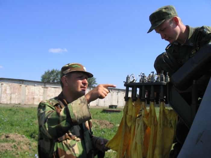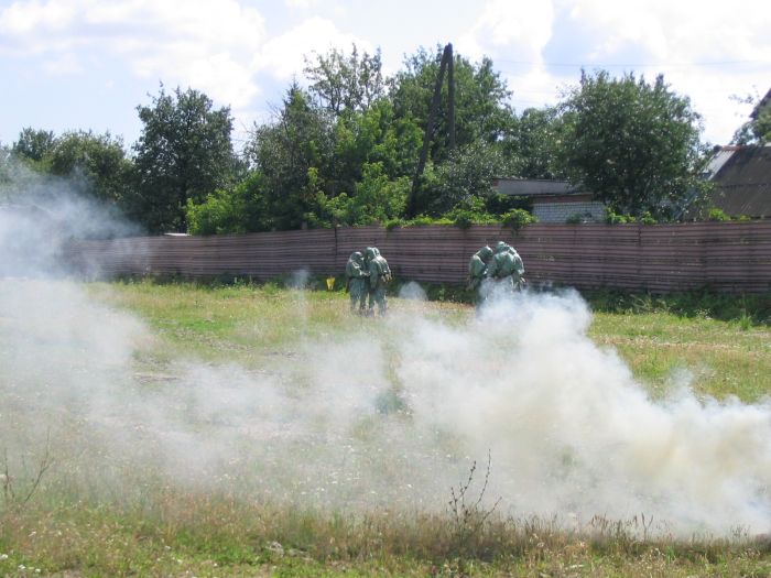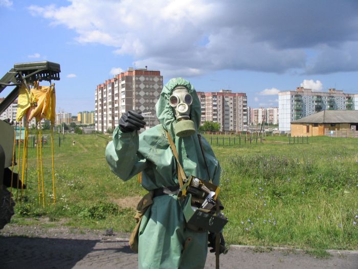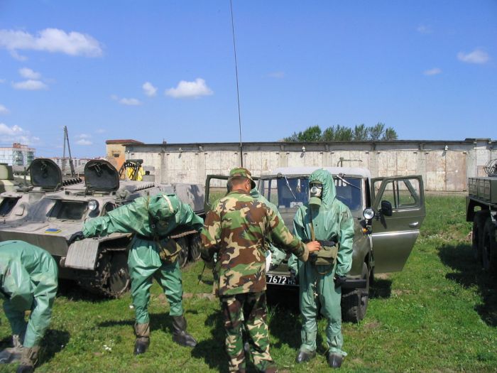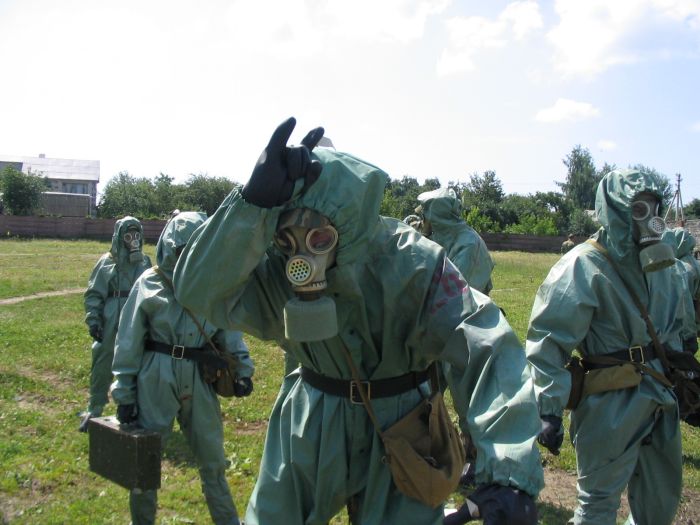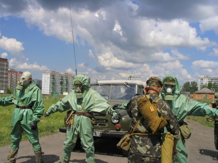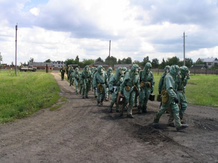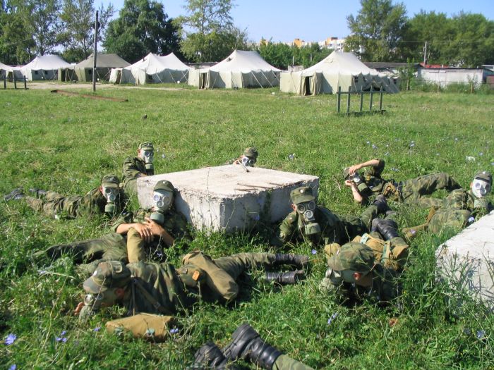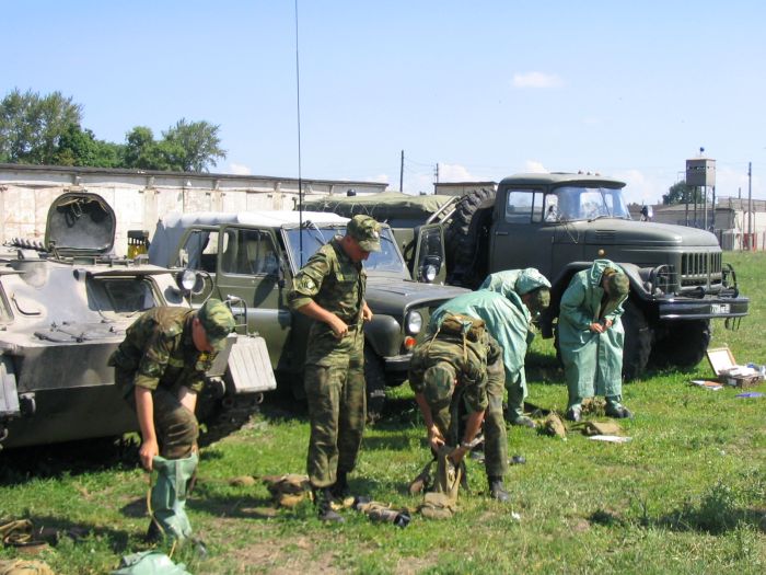 В конце концов, мы прибыли на место сбора. 9 человек (по три на каждую машину) со второго взвода отправили на машины. Остальные вынуждены были производить разведку пешком. Сначала произвели радиационную разведку с помощью ДП-5в, затем химическую с помощью ВПХР. После пункта замера радиации, где, естественно, сказали, что мы заражены, мы отправились на дезактивацию и дегазацию. В АРСе воды не было, поэтому пришлось сделать вид, что вода есть. После часовой прогулки в ОЗК и противогазах все просто охуевали. Мой китель был мокрый до такой степени, что казалось его окунули в ведро, на форме проступила соль. У остальных наблюдалась та же картина.