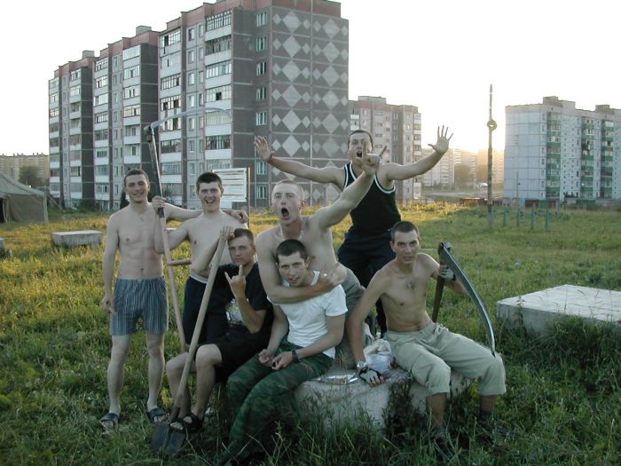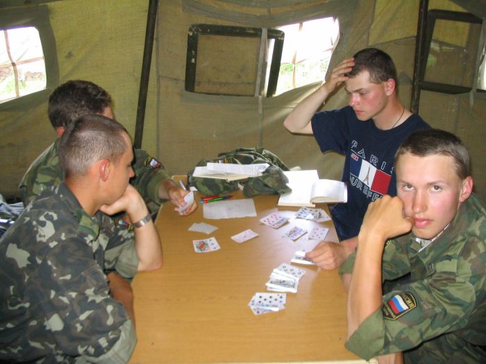 Из Москвы приехал полковник с проверкой. На всех наорал по поводу бардака. У Зайца под кроватью выгребли целую кучу пакетов. В пожарном ящике не оказалось песка. Никто не догадался убрать вещи с палатки. Короче, наше руководство оказалось не в самом приятном положении. Пришлось им напоить этого проверяющего... На следующий день он не появился. В своем отчете он наверняка написал: "Выявленные недостатки и нарушения устранены"