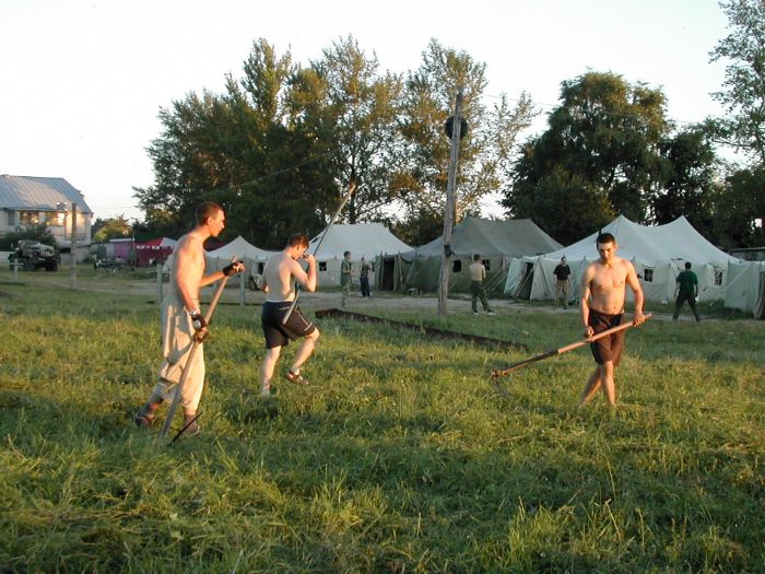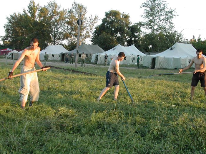 Михайлов заставил Фаса, Атояна, Абакума и Иванова косить траву. Остальным тоже понравилось косить. Михайлов охуел от выполненной работы.