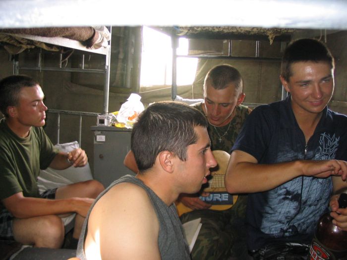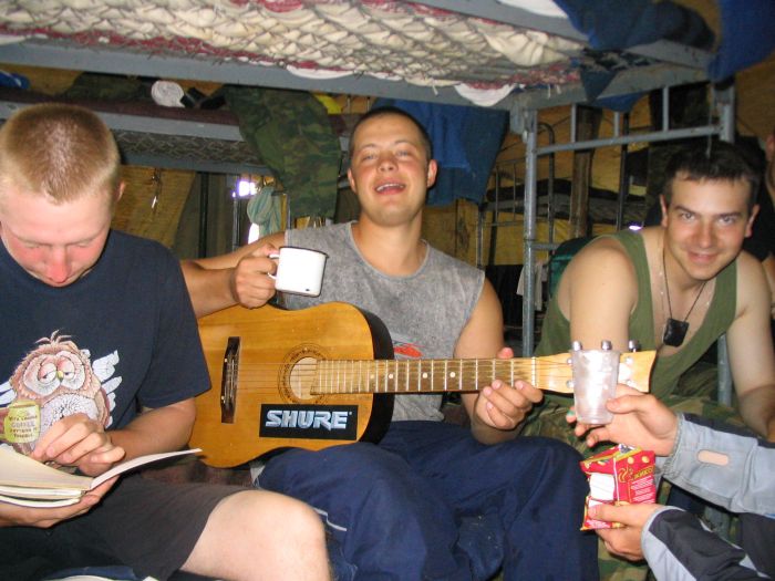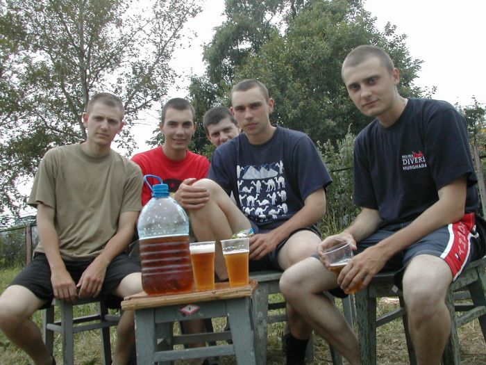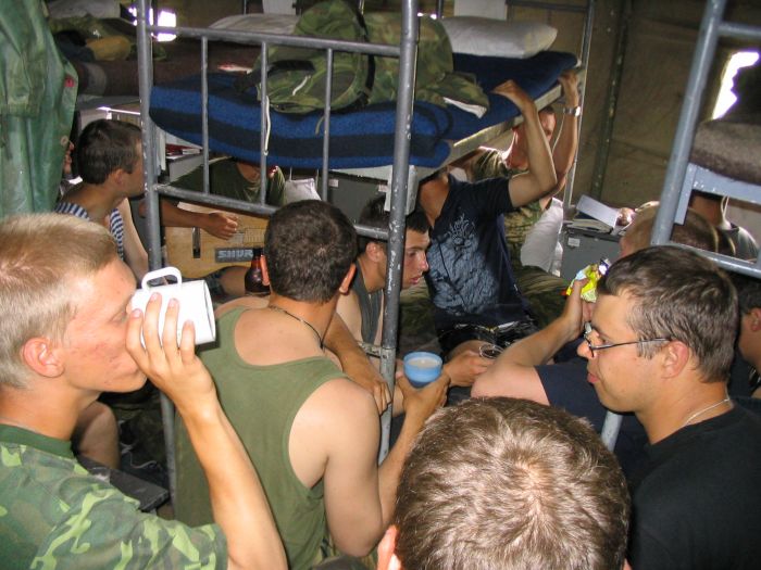 Отсидевшись немного в палатке, сходили в дальний магазин. Было куплено 8 литров Пикура и Толстяка. Все это было выжрано со вторым взводом под гитару. После обеда немного поиграли в волейбол. Игра не шла, так как мало кто попадал по мячу. Атоян нажрался в хлам и не смог выйти на вечернюю поверку. Вот такая была подготовка к экзамену.