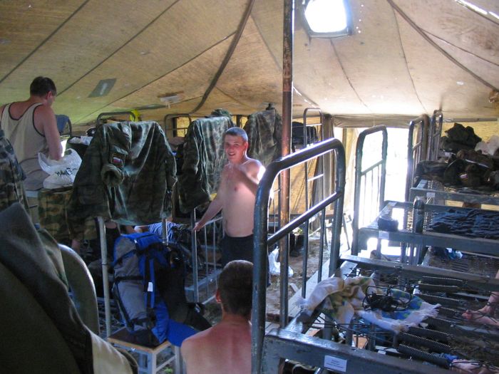 По прибытию в лагерь нас отправили в часть разгружать два КАМАЗа с кроватями, тумбочками, матрацами, одеялами и прочим имуществом. Работали до обеда. Заебались. Вернувшись в лагерь, помылись из АРСа. До ужина народ загорал и спал.