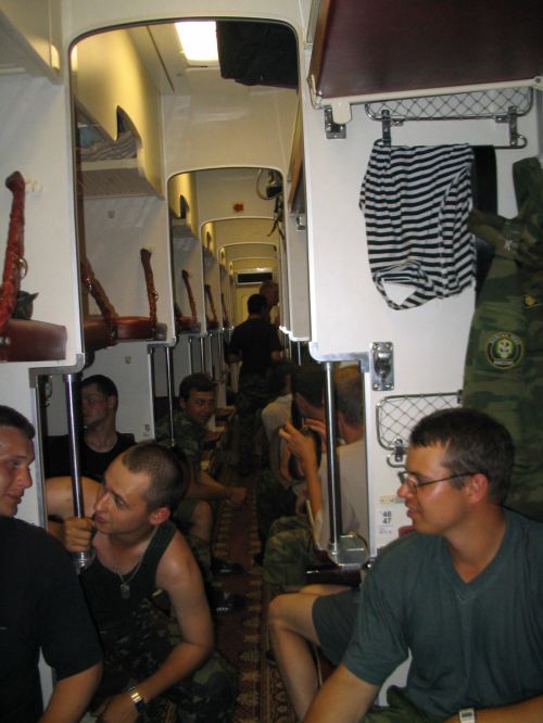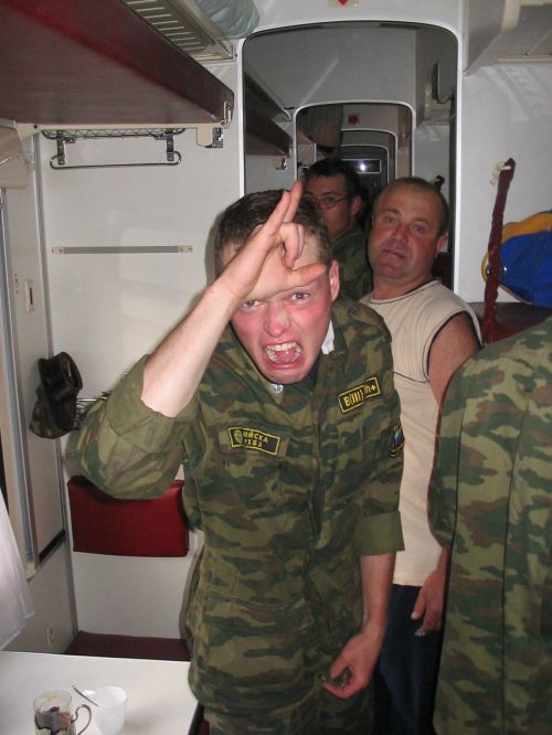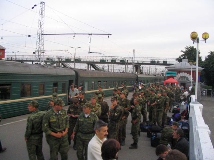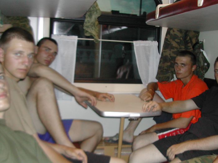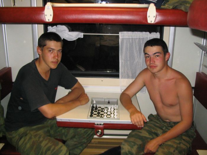 Второй взвод посадили в КАМАЗ, а нас в ЗИЛок, в который мы едва влезли. Но нам было похуй – мы ехали домой! Ехали в фирменном поезде "Соловей". Я с Шефом играю в шахматы. В поезде никто не бухает или бухают очень осторожно. И вот мы в грязной форме, вонючие, заебаные стоим на Курском вокзале. Поплавский раздает нам приписные и мы разъезжаемся по домам!