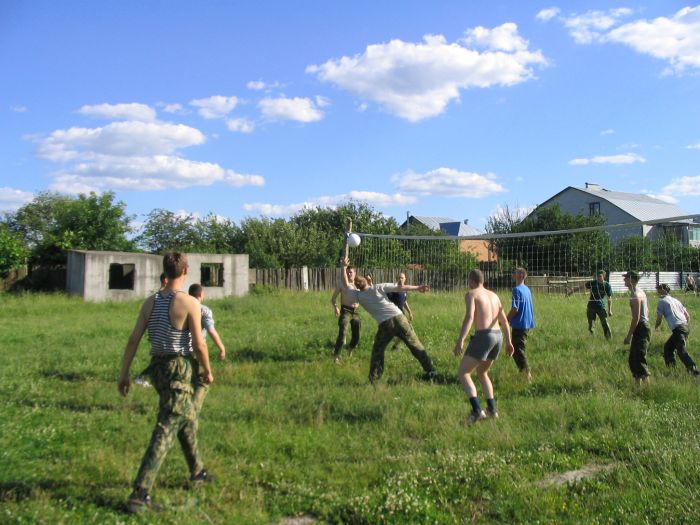 Самоподготовку провели на улице. Позагорали и высушили берцы. За три дня под стельками начала расти плесень, а кольца, в которые вставляются шнурки, заржавели. С этого дня и до конца сборов у нас новый прапорщик. Прапор реально позитивный, гораздо лучше розовой пантеры. А не сломай тот ногу, началась бы совсем другая жизнь...
