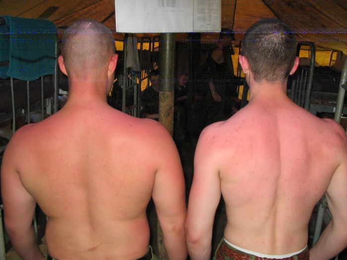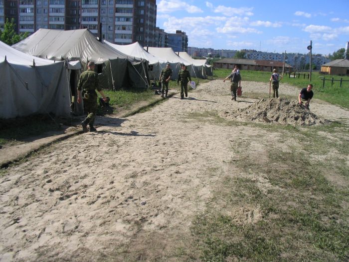 Погода наладилась: к обеду было градусов 30. Грязь возле палаток засохла, но командование, как раз тогда, когда это уже не нужно, выделило несколько самосвалов песка. Песком засыпали не только территорию перед палатками, но и сами палатки. Теперь все кровати и одежда будут в песке. Fucking shit! Фас и Вовка сгорели при погрузке этого песка.