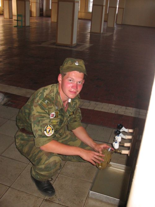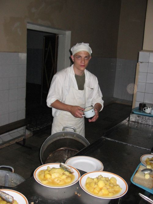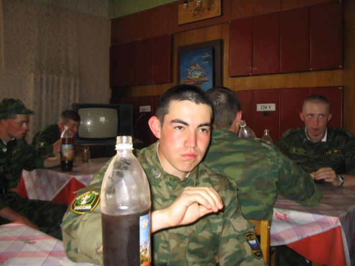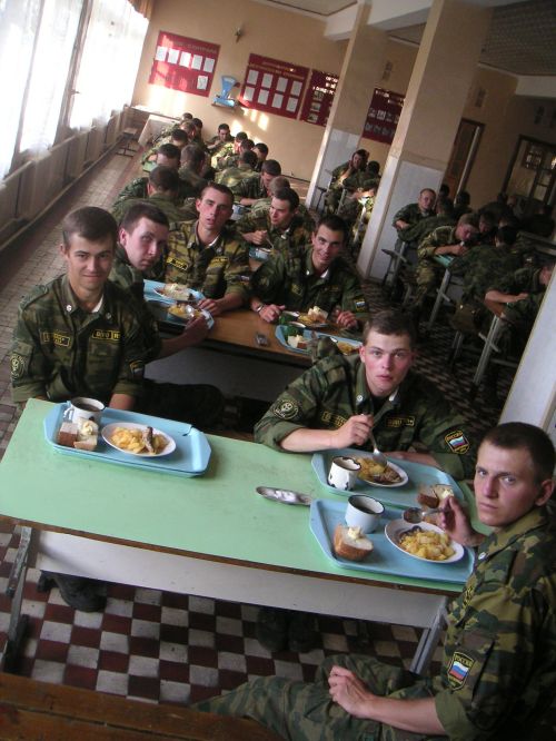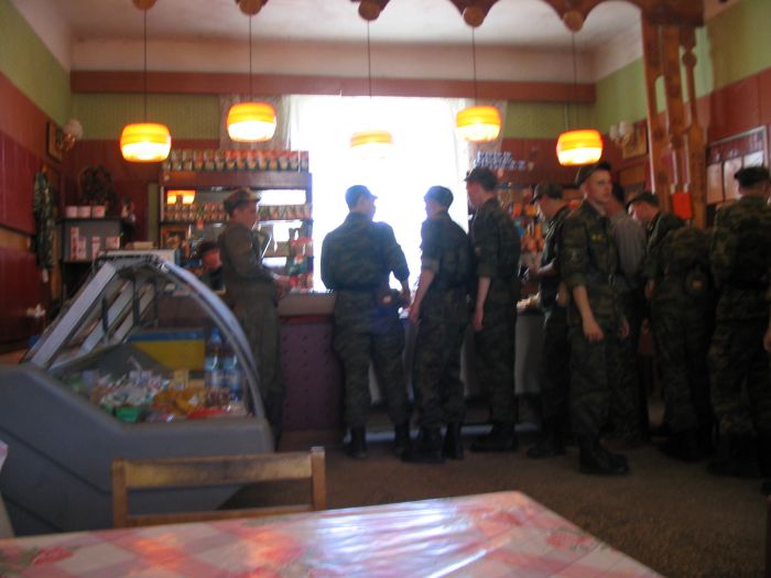 Подъем в 600. Впервые выходим на зарядку. Зарядка пустяковая: пробежали несколько кругов, помахали руками - ногами и все. На завтрак давали полный отстой: гороховую кашу с кусками жира. После завтрака остались в части для отработки принятия присяги. После 3-х часовой муштры целый час одевали ОЗК и противогазы. Побывали в чайной. Чайная - это обычный буфет, где кроме еды продают всякие военные прибамбасы (воротнички, нашивки, тельняшки) Цены относительно низкие.