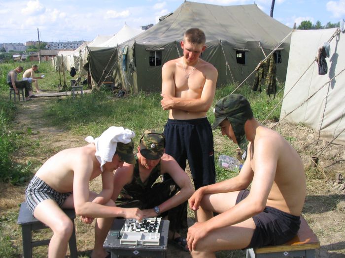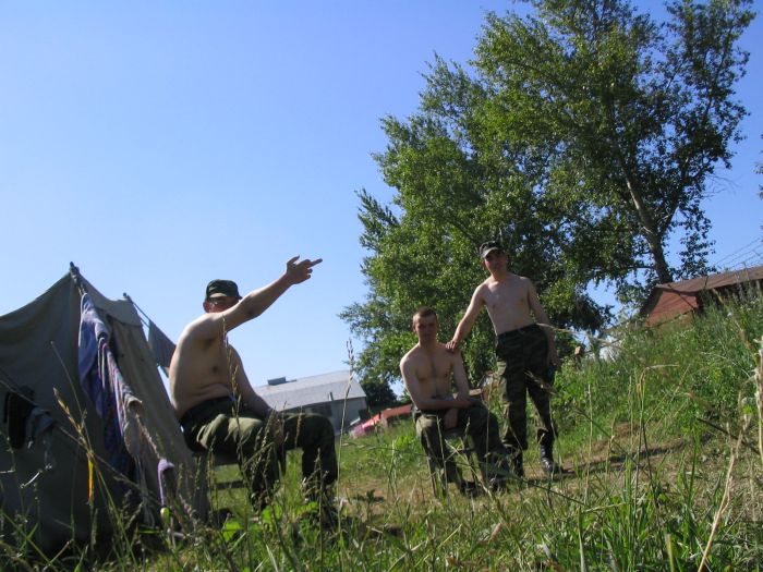 Подъем в 700, зарядки нет, так как сегодня воскресенье. Половина взвода уходит в увал, а мы остаемся в лагере загорать. В соседней палатке поют Битлз под гитару. Поют офигенно. В 1100 выдвигаемся в Музей Курской битвы. Нас довезли на КАМАЗе до части. Наевшись в чайной, идем пешком до музея.